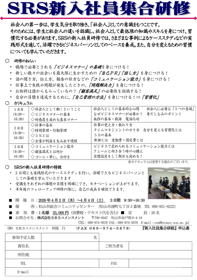 2026年新入社員集合研修 新入社員フォローアップ研修 マネジメント研修